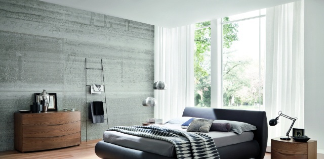 Vela double bed from Italian manufacturer Vittoria. The frame is made of wood. The bed is made with a cushioned headboard. Colors - black. Upholstered in textile or leather, from the company portfolio. The model will perfectly complement a contemporary bedroom interior.
