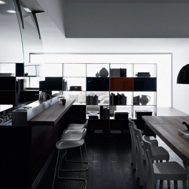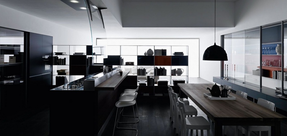 Set for the dining room by Italian manufacturer Valcucine. Set includes: dining table, chairs, sideboard. The frames are made of wood. Finishing varnish from the company portfolio. The table is made with a wide rectangular top. Chairs different white trim. The style is modern.