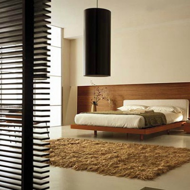 Headsets for bedrooms from Italian manufacturer Fimes. Set includes: double bed with high headboard and bedside tables. The legs are made of wood. The frame is made of wood. Finishing varnish from the company portfolio. Colors - beige, brown. Headboard upholstered in leather. Set is manufactured in contemporary style. Bedside table painted with two different Deposit, boxes.
