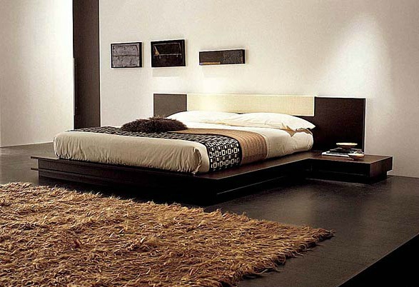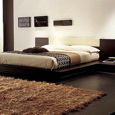 Headsets for bedrooms from Italian manufacturer Fimes. Set includes: double bed with high headboard and bedside tables. The frames are made of wood. Podium beds continues in bedside tables. Finishing varnish from the company portfolio.