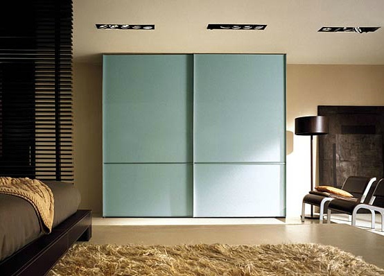 Wardrobe from the Italian manufacturer Fimes. The frame is made of wood and metal. Finishing varnish from the company portfolio. Fittings - metal. Sliding doors - wood. Color scheme - light blue. The Cabinet is designed in modern style.