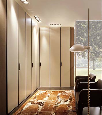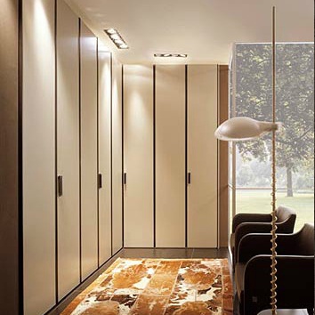 Corner wardrobe from the Italian manufacturer Fimes. The frame is made of wood. Finishing varnish from the company portfolio. Fittings - metal. The model is made with eight doors made of wood and metal fittings. The style is modern.