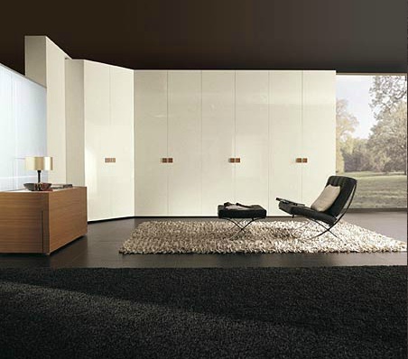 Corner wardrobe from the Italian manufacturer Fimes. The frame is made of wood. Finish - gloss lacquer from the company portfolio. Fittings - metal. High model is made in a modern style.