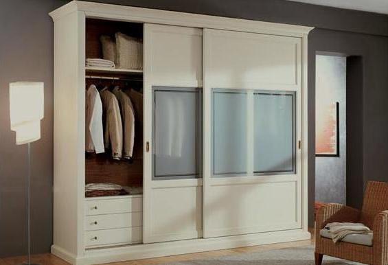 Wardrobe by Italian producer Giorgio Piotto. For making of frame is used the wood of valuable breeds. Model two door. Sliding doors, with inserts of frosted glass. The Cabinet has an internal drawer, shelves and hangers. Accessories metal. Model in white, styled with classic style.