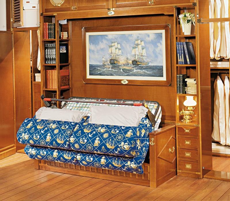 Maria Vecchia sofa from Italian manufacturer Caroti. Sofa bed built-in niche Cabinet, the frame is made from solid wood, upholstery - fabric to be selected from the manufacturer's catalogue. A great option for bedrooms in classic style with sea motifs.