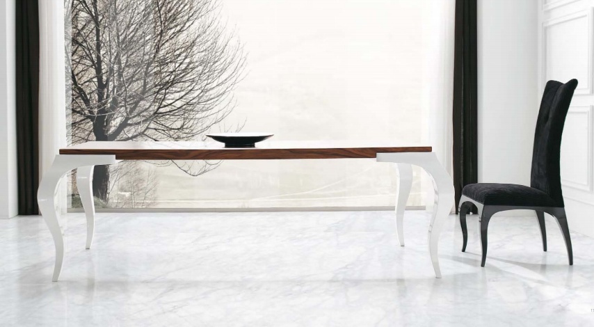 Dining table Abril collection from the Italian manufacturer Mobil Fresno. The frame is made of wood. Finishing varnish from the company portfolio. Colors - white and brown. The legs are made in the form of Cabriole. The model will perfectly complement the modern interior of the dining room.