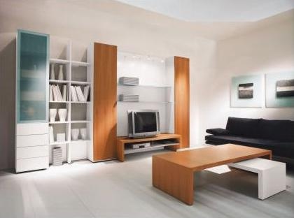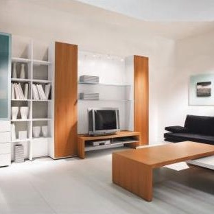 Modular system from the German manufacturer Kettnaker. Consists of open shelves, a few drawers, space for TV and a section with hinged door. Material - solid wood. Finish offered a choice from the collection of the company. Characterized by elegance and spaciousness.