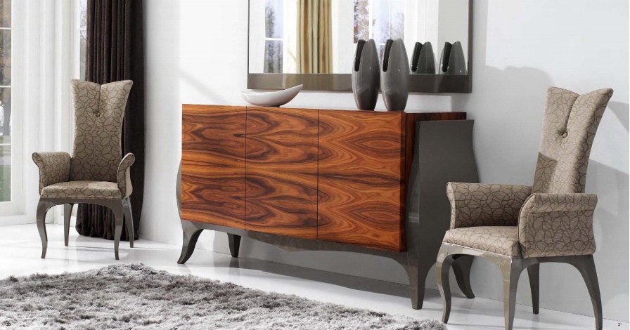 The Abril buffet collection from the Italian manufacturer Mobil Fresno. The frame is made of wood. Finishing varnish from the company portfolio. Colors natural and brown. The legs are made in the form of Cabriole. The sideboard consists of three large sections. The model will perfectly complement the modern interior of the dining room.