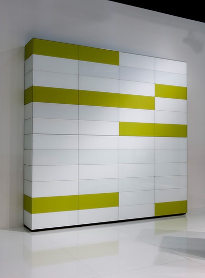 The bookcase from the German manufacturer Kettnaker. The model with eight doors. Each door is secured with special magnets and can be interchanged with others. Offered lacquer finish or veneer. Available wide range of colors. Inside are glass shelves.