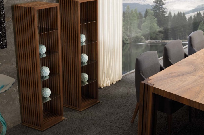 Showcase the collection of the Amon from the Italian manufacturer Mobil Fresno. The frame is made of wood. Finishing varnish from the company portfolio. Colors - brown. Shelves made of solid glass.