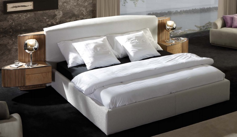 Set for bedroom collection Amon from the Italian manufacturer Mobil Fresno. Set includes: double bed, bedside tables. The frames are made of wood. Finishing varnish from the company portfolio. Upholstery headboard - textile I. Color palette - white and brown. The model is made in modern style.