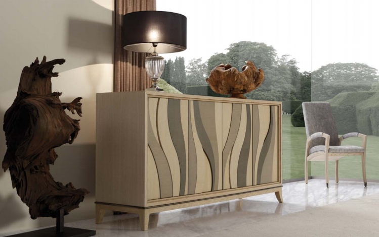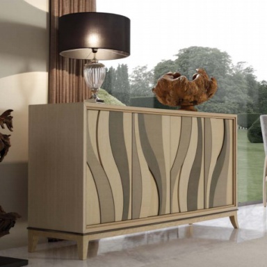 The canteen collection from Artisan Italian manufacturer Mobil Fresno. The frame is made of wood. Finishing varnish from the company portfolio. Colors - beige and green. The sideboard contains four sections. Sideboard decorated with carved elements. The model will perfectly complement the modern interior of the dining room.