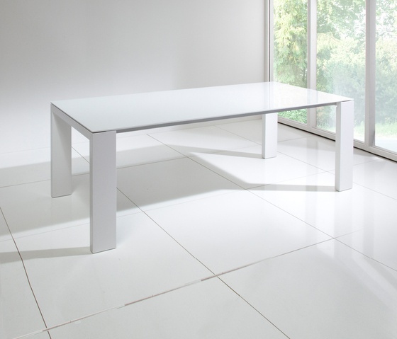 Dining table from the German manufacturer Kettnaker. Made in a modern style. The tabletop and legs made from solid wood. Surface treated high gloss lacquered white. Is characterized by durability and elegance.