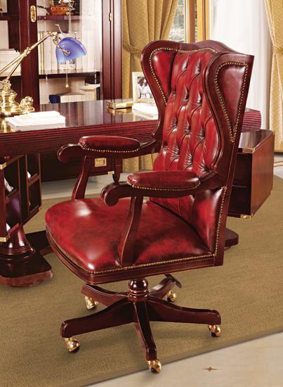 Chair Jear from the Italian manufacturer Caroti. The model is made on the frame made of mahogany wood or other to choose from a catalog company, upholstery leather, colours from the assortment. The design complements a decorative stitch-the captain. A great addition to the Desk in a classic style.