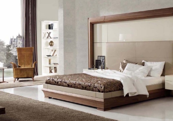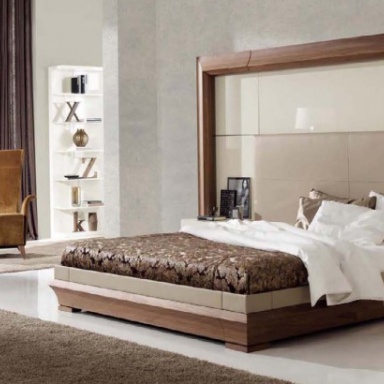 Double bed collection Eros Collection from the Italian manufacturer Mobil Fresno. The frame is made of wood. Finishing varnish from the company portfolio. Colors - brown. The model is made with high headboard.
