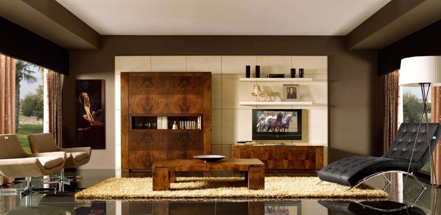 Sofa set collection from Italian Eros Programa Mobil Fresno manufacturer. Set includes: coffee table, armchairs, chest of drawers and a wardrobe. The frame is made of wood. Upholstery - textiles from the assortment of the company. Chair legs made of metal. Set is made in modern style.