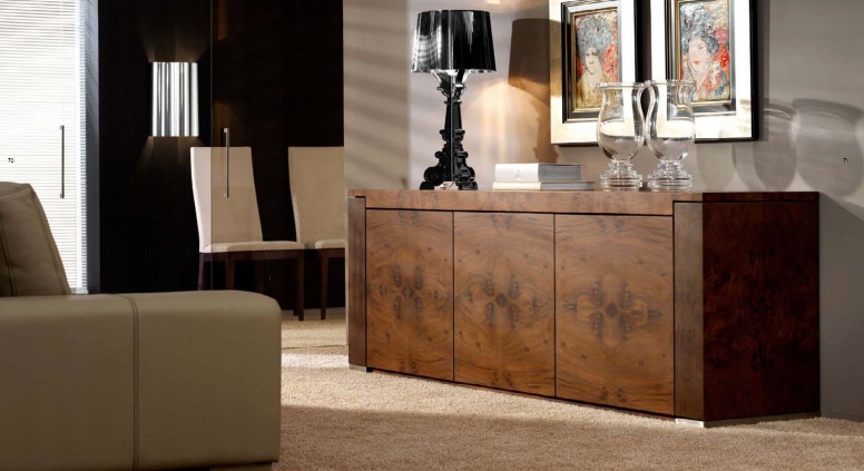 The canteen collection from Italian Eros Programa Mobil Fresno manufacturer. The frame is made of wood. Finishing - varnish brown. Doors made without fittings. The sideboard will perfectly complement a modern interior.