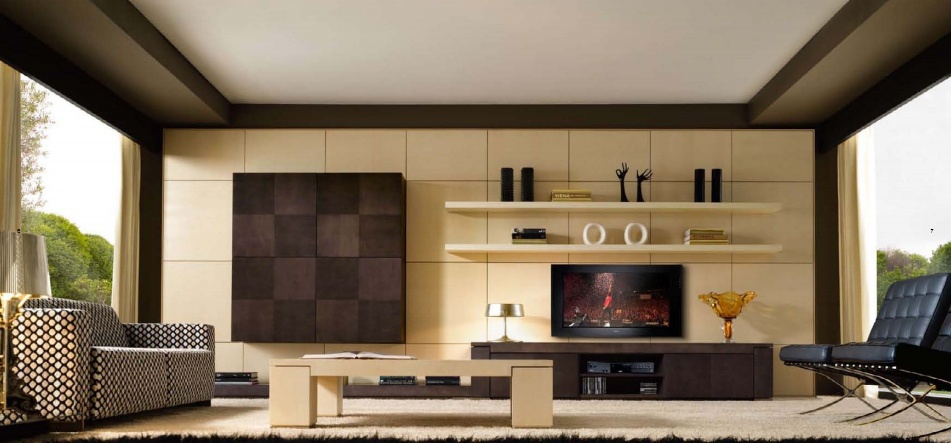Furniture for TV collection from Italian Eros Programa Mobil Fresno manufacturer. The frame is made of wood. The finishing - varnish. Cveta gamma - white and brown. The model is made in modern style.