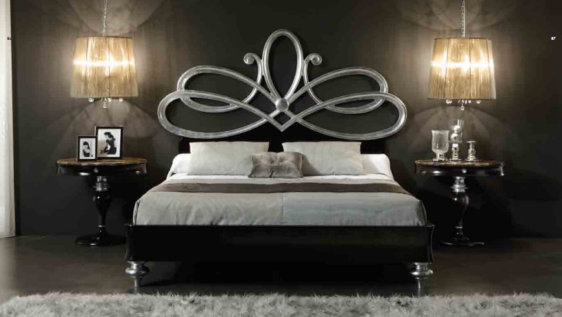 Set for bedroom Savoy collection from the Italian manufacturer Mobil Fresno. Set includes double bed, bedside tables. The bed is made with high headboard. The frame is made of wood. The finishing - varnish. Cveta gamma black, grey. Legs - round. Set is made in a classic style.