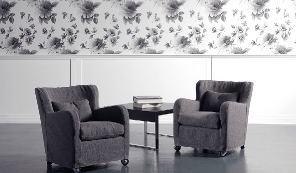 The Micro Milla chair from the Italian manufacturer Marac. The frame is made of wood. Upholstery - textiles from the company portfolio. Colors - gray, black. The legs are made in the form of wheels Back with ears. The model is made in modern style.
