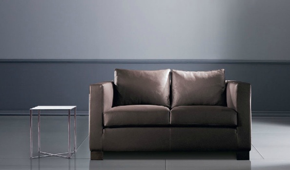Double Orson Small sofa from Italian manufacturer Marac. The frame is made of wood. Upholstered in leather from the company portfolio. Colors - brown. Legs - of wood. The armrests are square. The model is made in modern style.