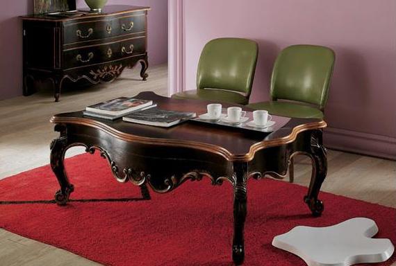 Coffee table from the Italian manufacturer Giorgio Piotto. The frame is made from solid wood. The tabletop is rectangular, with legs "Cabriole" in the form of a hoof. The model is designed in classic style, decorated with handmade carving.