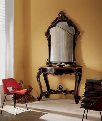 Console in classical style from the Italian producer Giorgio Piotto. The model is made of solid wood. The console is dark brown, counter light. The console on legs "Cabriole", decorated with handmade carving.