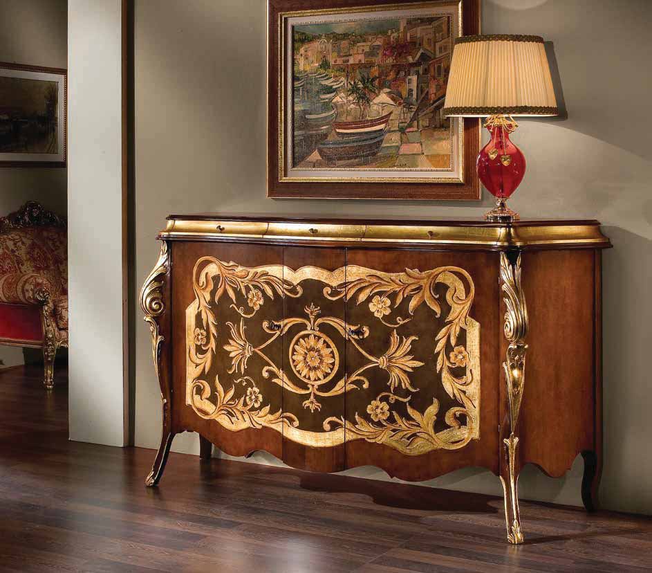 Dresser produced by Italian company Scappini & C. For the manufacture of the frame is made from solid wood. The model is presented in brown color, with a Golden pattern. Dresser with three drawers. The model is decorated with handmade carving. The product is made in a classic style.