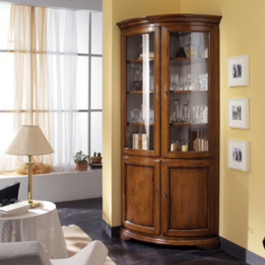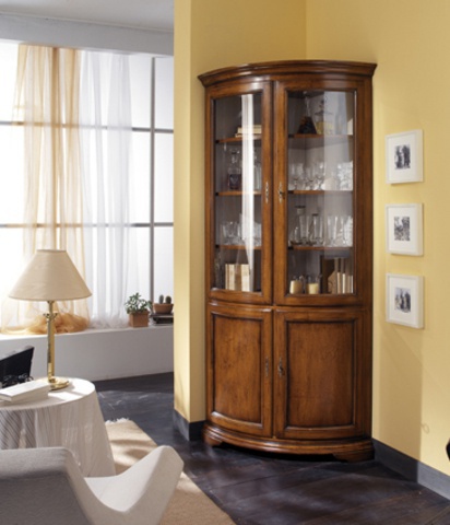 Showcase from Italian manufacturer Mascotto. The frame is made of wood. The finishing - varnish. The door is made of glass. The door closes with a key. The Cabinet is decorated with carved elements. The model is made in classic style. Wardrobe - corner.