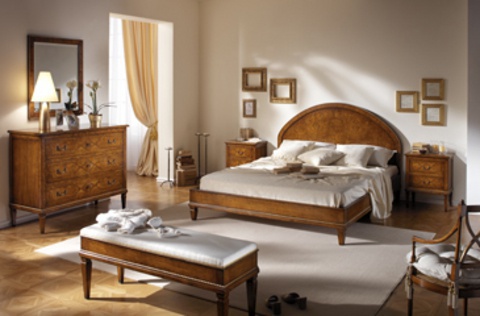 Headsets for bedrooms from Italian manufacturer Mascotto. Set includes: double bed with high headboard and solid, bedside tables with two drawers, roomy chest with three askami, daybed in fabric. The frame is made of wood. The finishing - varnish. Fittings - metal. Colors - brown. Set is made in a classic style.