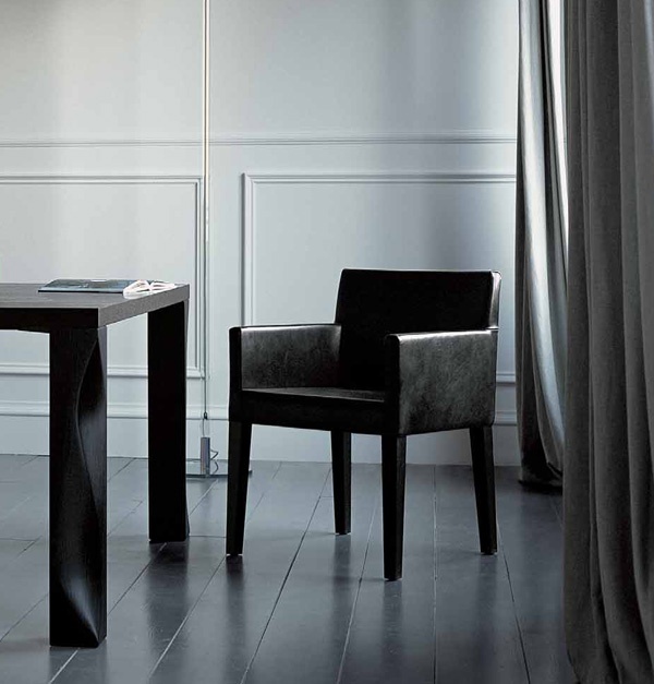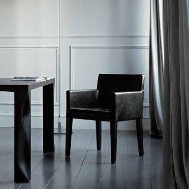 The Quadra chair from the Italian manufacturer Casamilano. The base of the chair is made of metal, and the legs are made of wood. The upholstery is presented in a leather and textile version. The color of this model of chair you can choose from the catalogue of the manufacturer.
