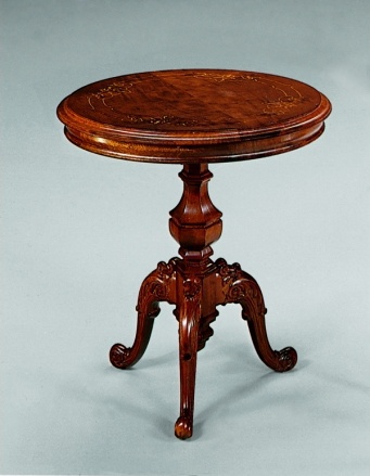 Table from the Italian company Scappini & C. the Frame is made from solid wood. The table top is round, decorated with inlay handmade. Leg massive, carved. The product is executed in classical style.
