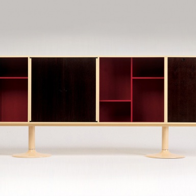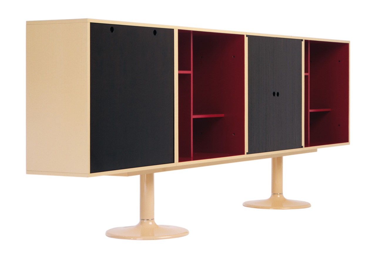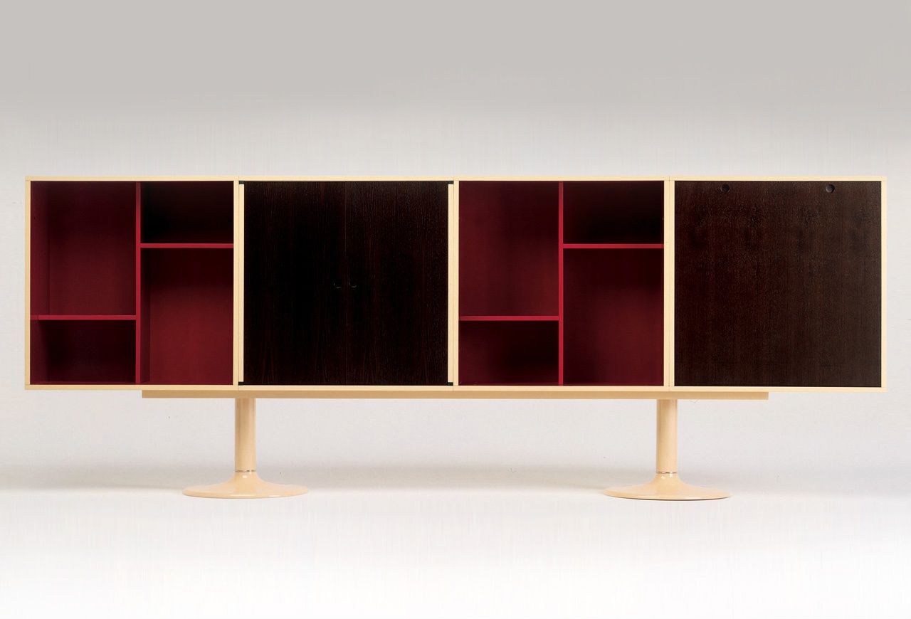 Stand with legs LC CASIERS STANDARD from the Italian manufacturer Cassina. Design by Le Corbusier, Pierre Jeanneret. The frame is made of solid wood with legs made of painted steel. The surface is treated with lacquer, the top can serve as a barrier and a platform for TV. The model is designed for an interior designer style.