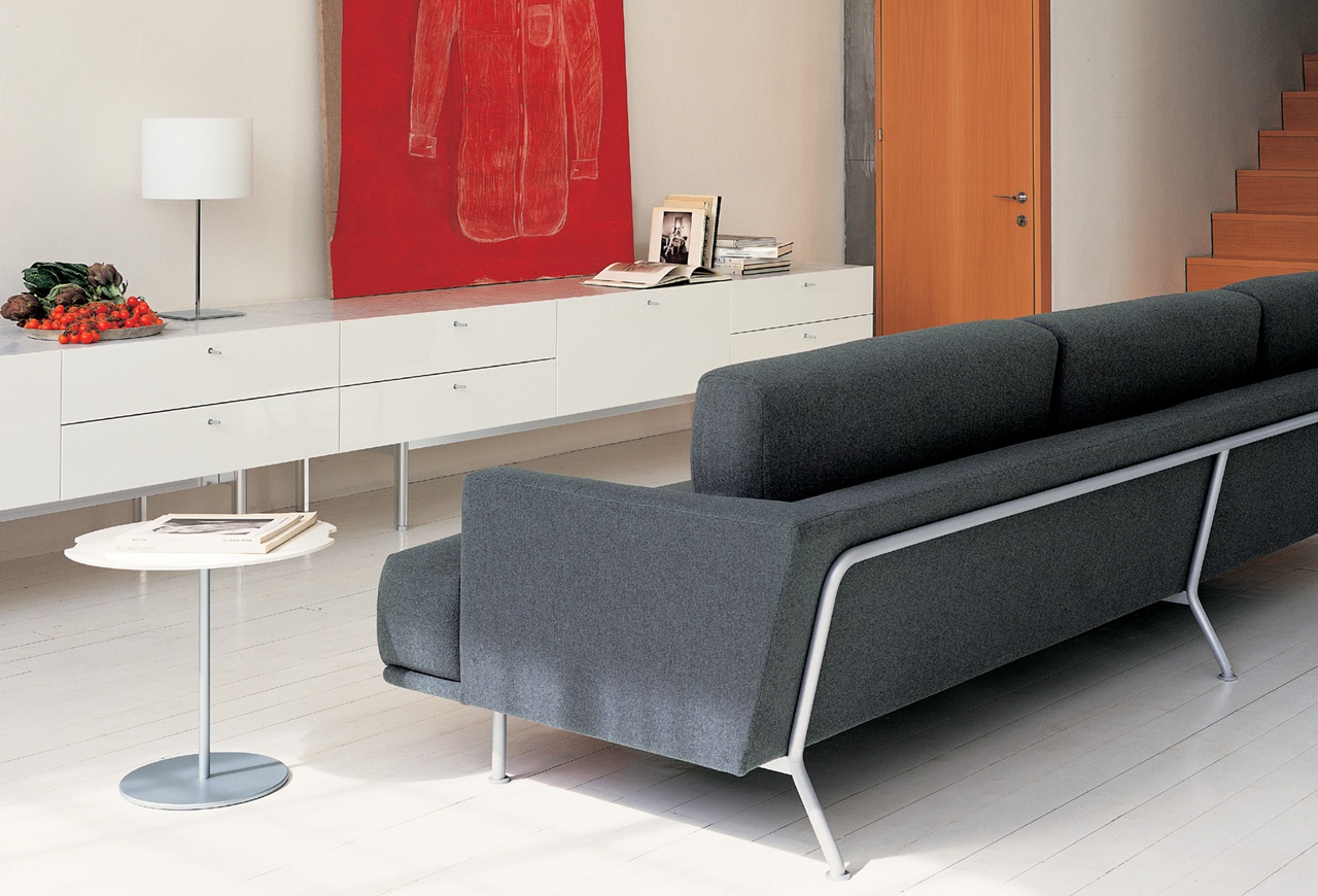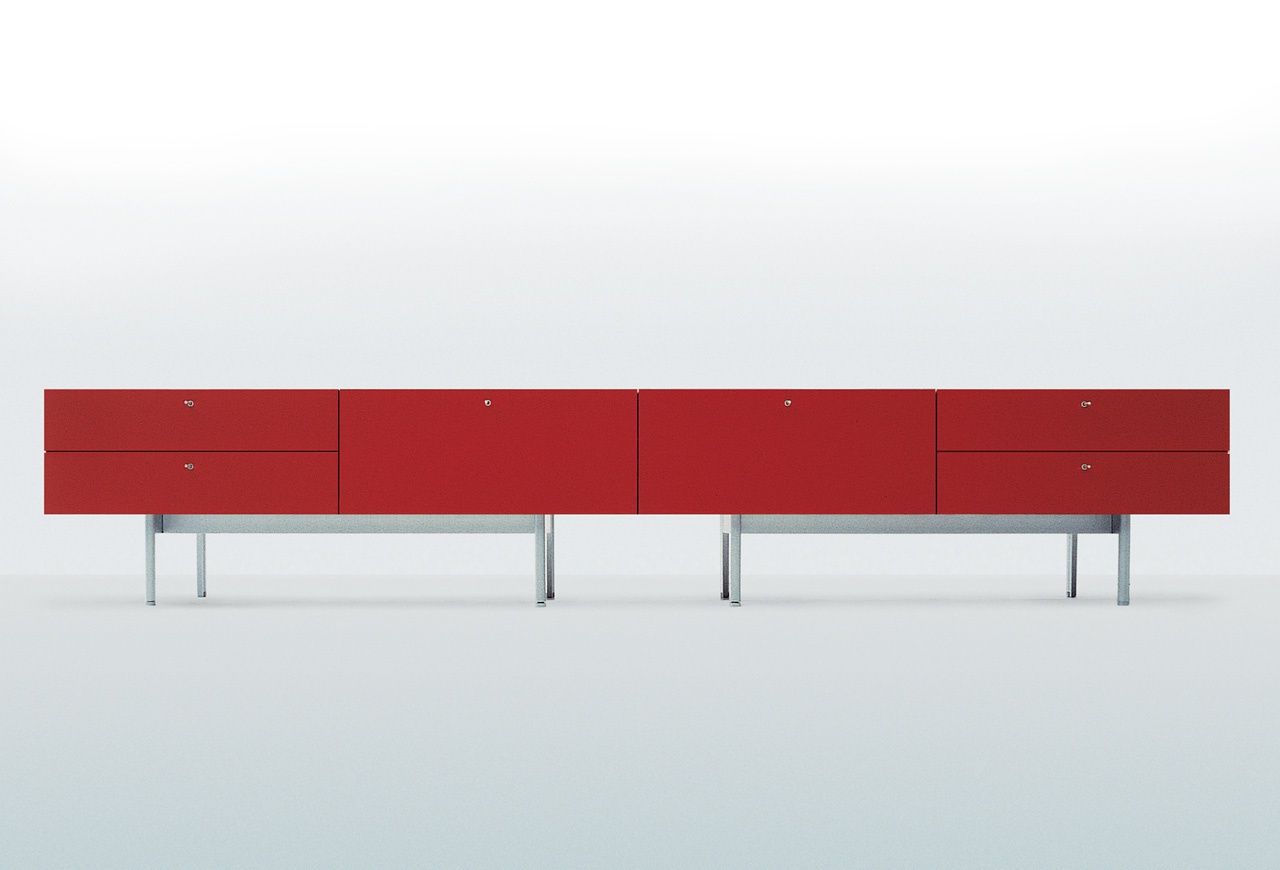 Chest FLAT 255 from the Italian manufacturer Cassina. The body is made from solid wood worktop - oak/frosted glass/marble. The surface is treated with varnish from the company portfolio. The model is designed for living room design decoration. Colours in stock.