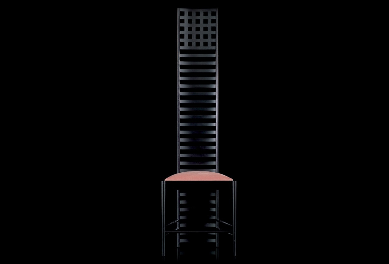 Chair with high back 292 HILL HOUSE 1 from the Italian manufacturer Cassina. The frame is made from solid ash, the surface is processed by lacquer in black color. Seat cover - fabric from the company portfolio. Model with a high back. A chic choice for interior design. Colors: pink, green, black.