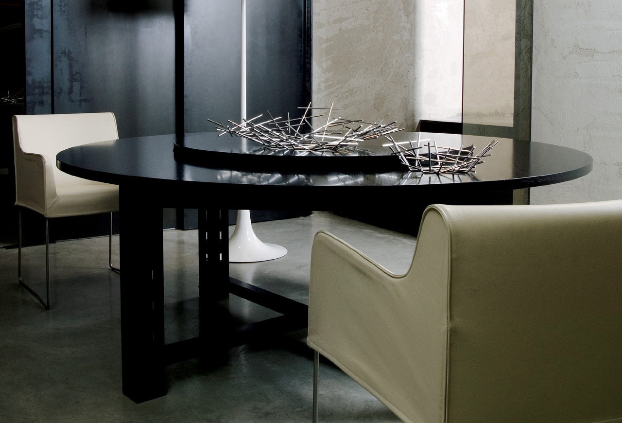 Dining table 304 G. S. A. from the Italian manufacturer Cassina. The frame is made of solid ash or walnut, the surface is treated with varnish from the company portfolio. Model round shape. A lovely choice for dining room design decoration. Colors: walnut, black.