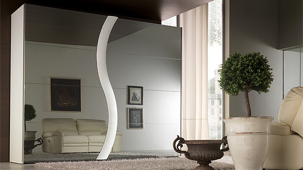The closet Star produced by Italian company Saber, a collection of Luxury. The enclosure frame is made of white ash. The model with two sliding doors with smoky mirrors, separated by a vignette in the form of a letter S covered in white crocodile skin. The wardrobe, designed in a modern style.