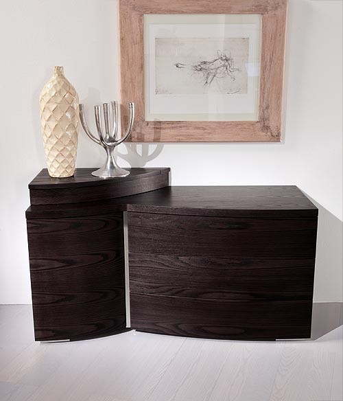 Chest Opera from the Italian manufacturer Saber, a collection of Luxury. Frame coffee color, made of solid ash, finished with a strip of shiny steel. Equipped with built-in drawers blum motion guides. Legs are metal in a tone of the decorative insert. The product stands out with a soft design made in modern style.