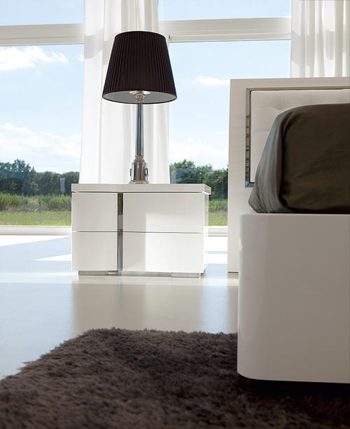 Bedside table Italian Opera from the manufacturer Saber, a collection of Luxury. The skeleton from bleached ash wood with "open pore" textured finish, decorated with a band of shiny steel. The surface is lacquered. Equipped with built-in drawers blum motion guides. The nightstand features simple and modern design.