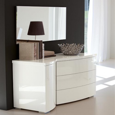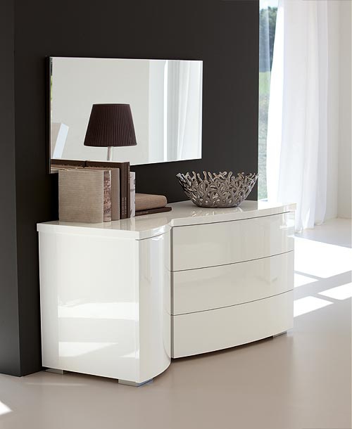 Chest Opera from the Italian manufacturer Saber, a collection of Luxury. Frame lacquered, white color, made of ash wood with "open pore" textured finish, decorated with a band of shiny steel. Equipped with built-in drawers blum motion guides. The dresser features simple and modern design.