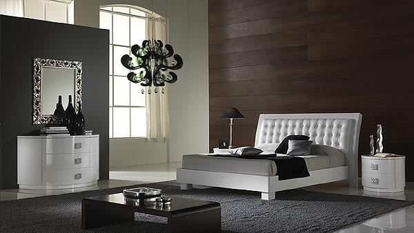 Bed Elite produced by Italian company Saber, collection Evolution. The frame is made from solid wood, painted white, surface lacquered. Headboard is soft, upholstered in genuine white leather, decorated with stitch. The bed is designed in modern style.