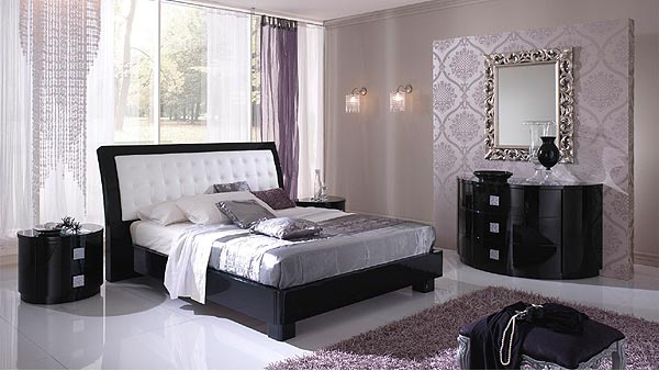 The Elite bed from Italian manufacturer Saber, collection Evolution. The frame is made from solid wood. Bed in black color, the surface is lacquered. Soft headboard, decorated stitch. Upholstery made of genuine leather of white color. The model is made in modern style.