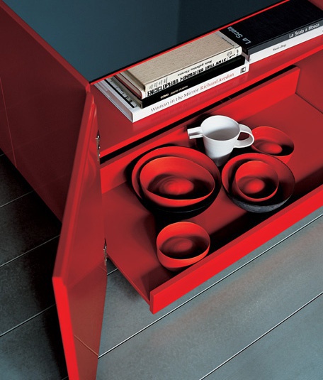 Stand B&W from the Italian manufacturer Casamilano. The Cabinet is made of MDF and the table top is made of mirrored glass. The color of this model cabinets - red and black.