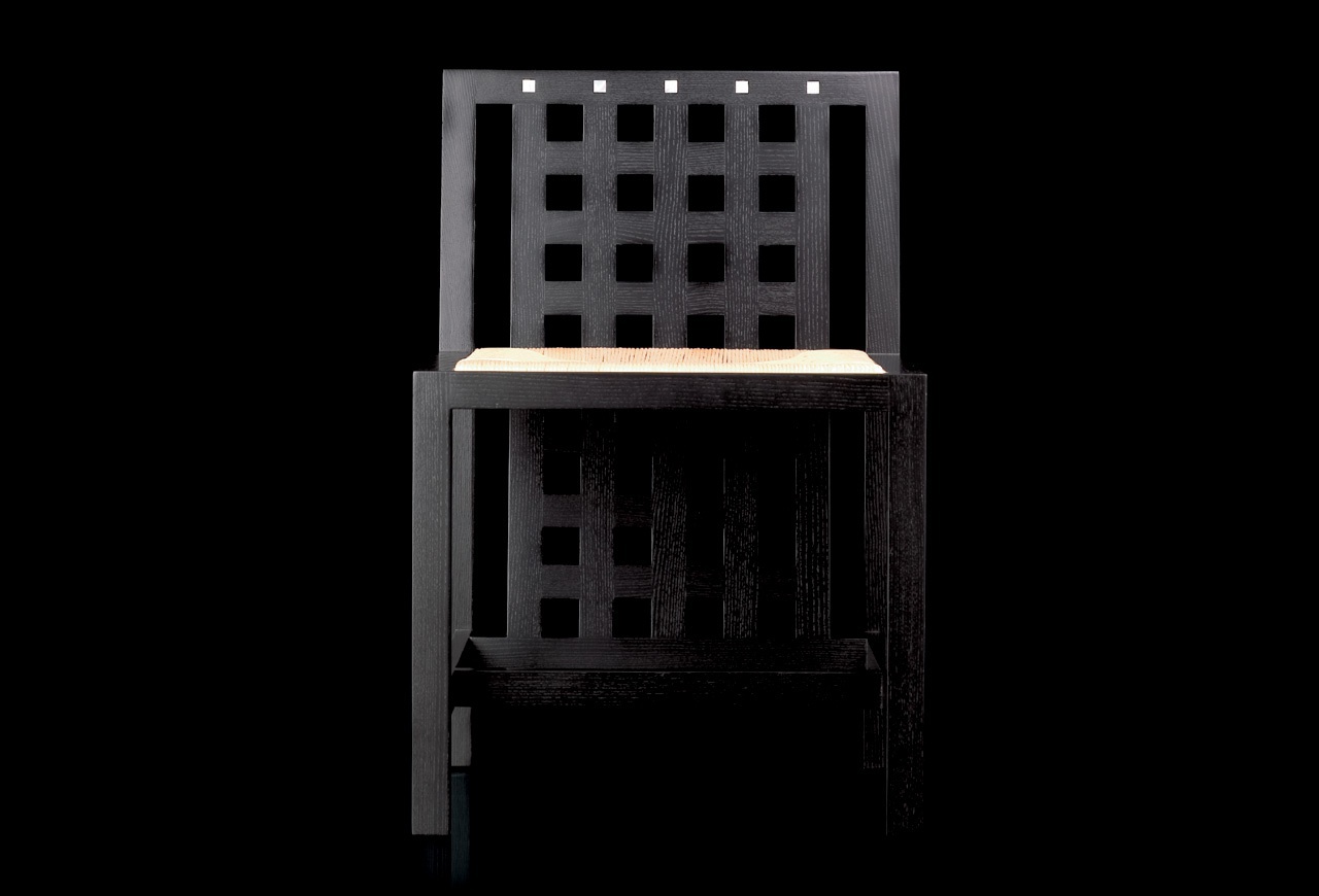 Chair from solid wood 324 D. S. 3 from the Italian manufacturer Cassina. The frame is made of solid ash. The surface is processed by lacquer in black color. The wicker seat. A chic choice for interior design.