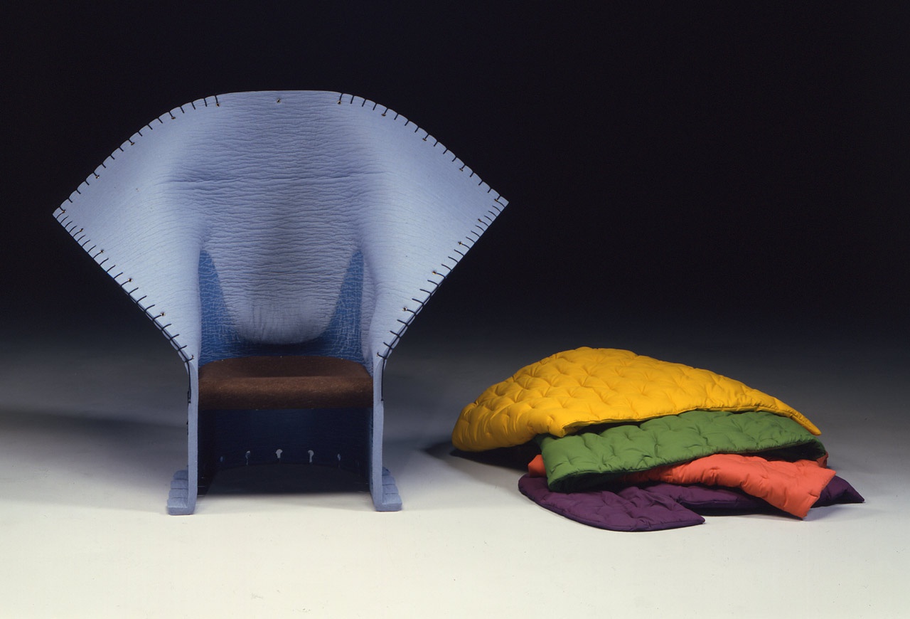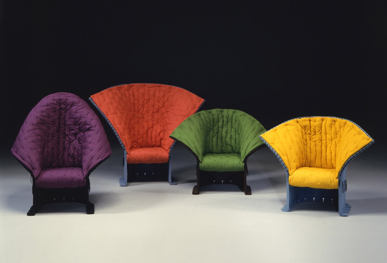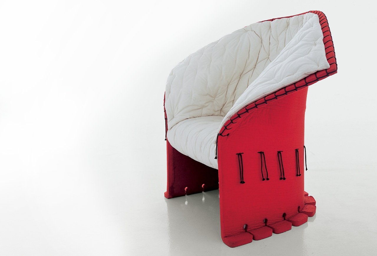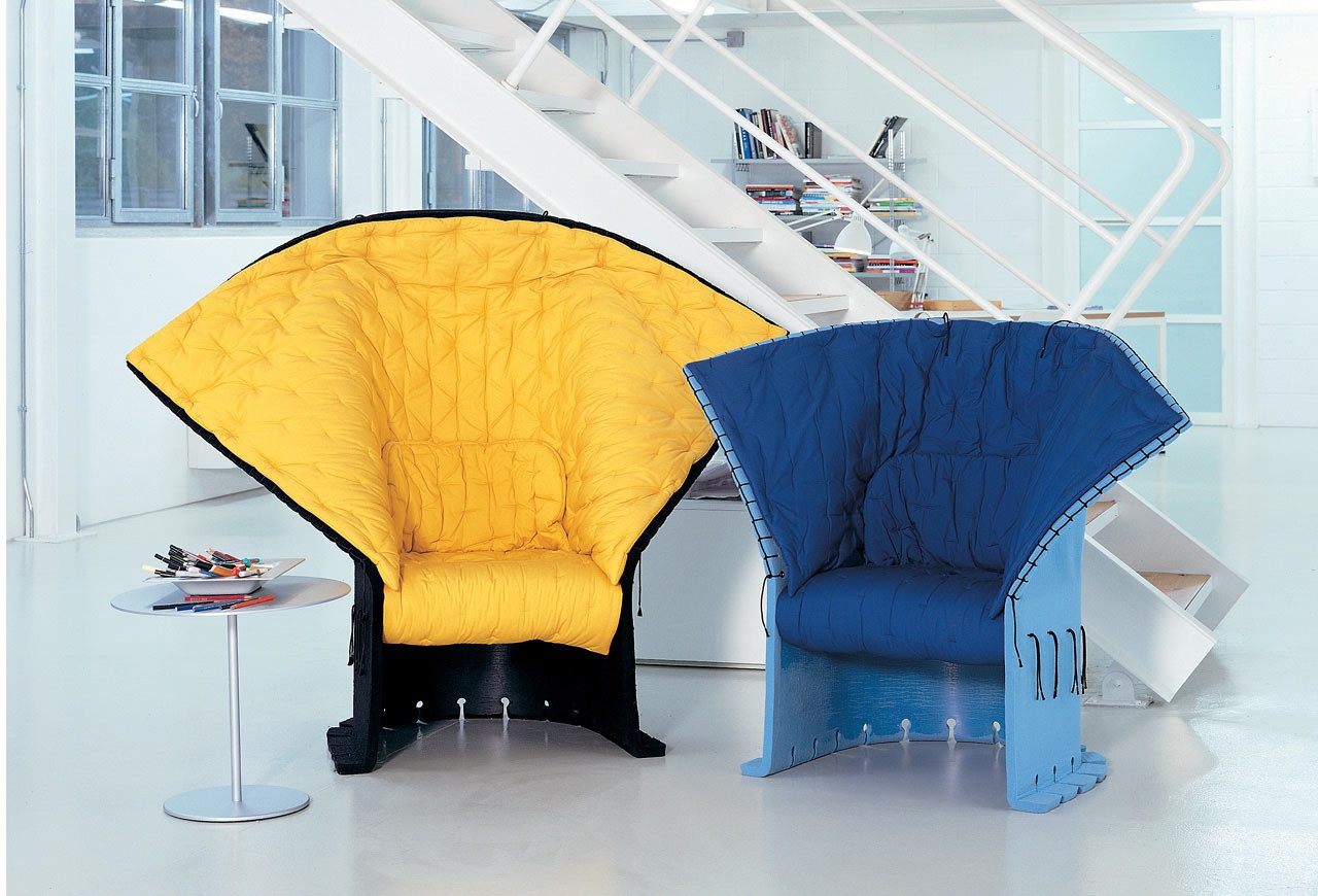 A chair with a mobile frame 357 FELTRI from the Italian manufacturer Cassina. Design from Gaetano Pesce Centro Design e Comunicazione. Filler - foam, upholstery - cloth from the company portfolio. Model with a high back. The perfect choice for interior design. Colours in stock.