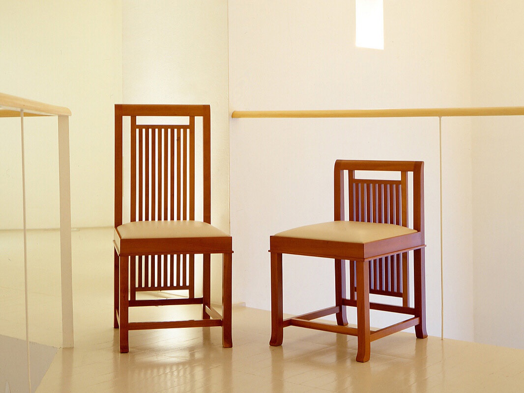 Chair with wood frame 609 COONLEY 1 from the Italian manufacturer Cassina. Designer - Frank Lloyd Wright. The frame is made from solid cherry, the surface is treated with varnish from the company portfolio. Filler - foam, upholstery - leather or fabric from the company portfolio. Colors: natural wood color, black; upholstery of the seat according to the manufacturer's catalogue.