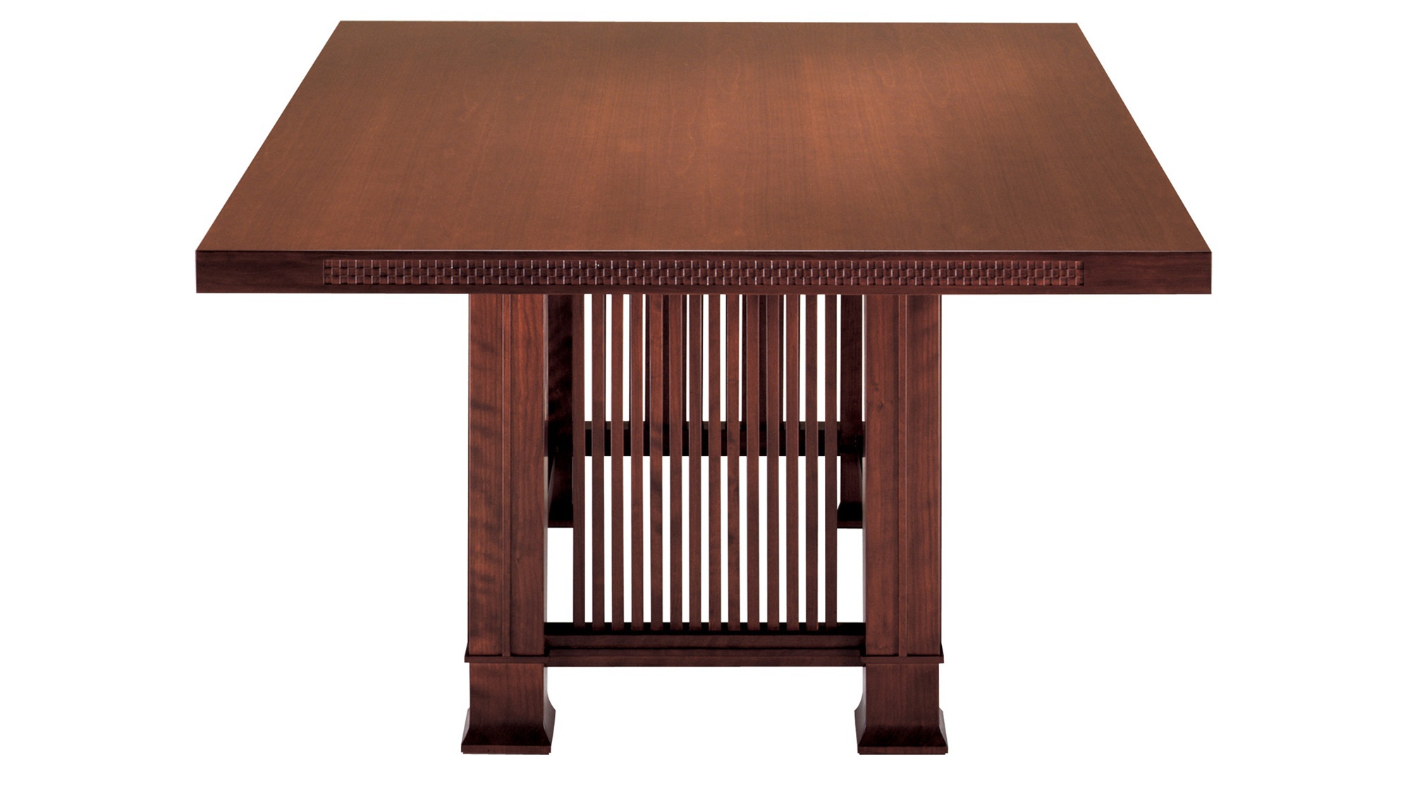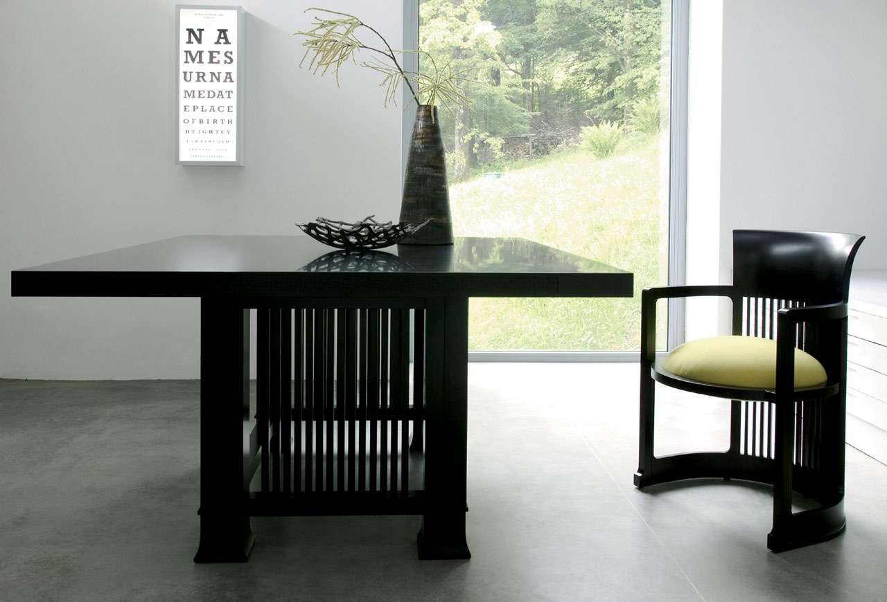 Rectangular dining table 615 HUSSER from the Italian manufacturer Cassina. Designer - Frank Lloyd Wright. The frame is made from solid cherry wood. Legs with inlaid handmade. The model is intended for an interior with a modern design. Colors - natural wood color, black.