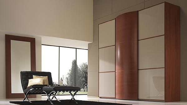 Cupboard Luna from Italian manufacturer Saber, collection Evolution. The frame is made from solid cherry, brown. Door is smoked glass. The model is characterized by spaciousness and contemporary design.