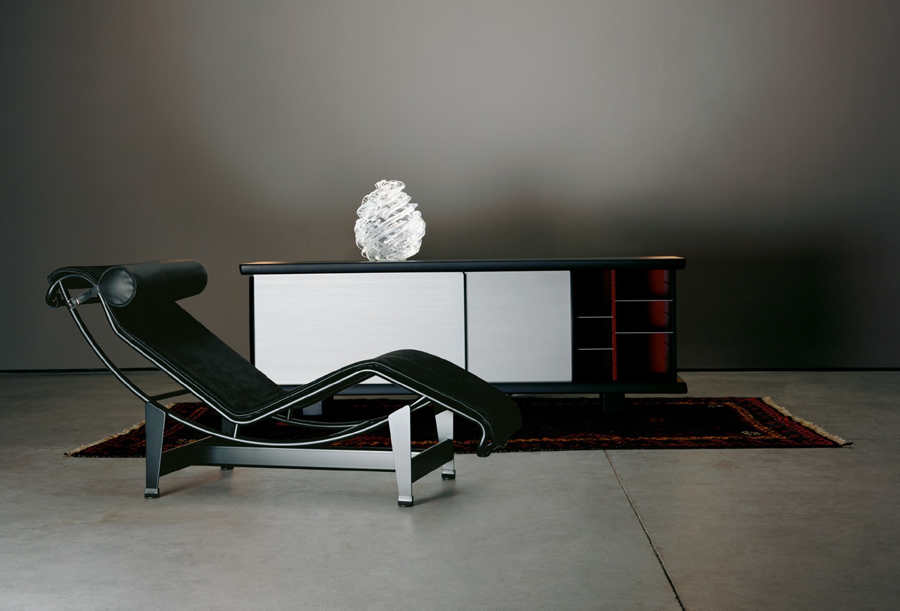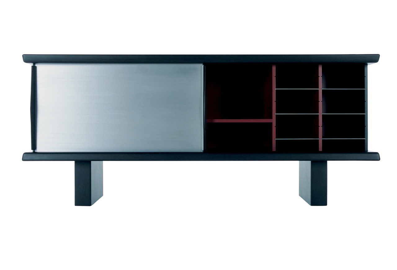 Cabinet on high legs RIFLESSO from the Italian manufacturer Cassina. Designer - Chalotte Perriand. The body is made of solid ash. Model with sliding doors and open sections. A good choice for interior design. Colours in stock.