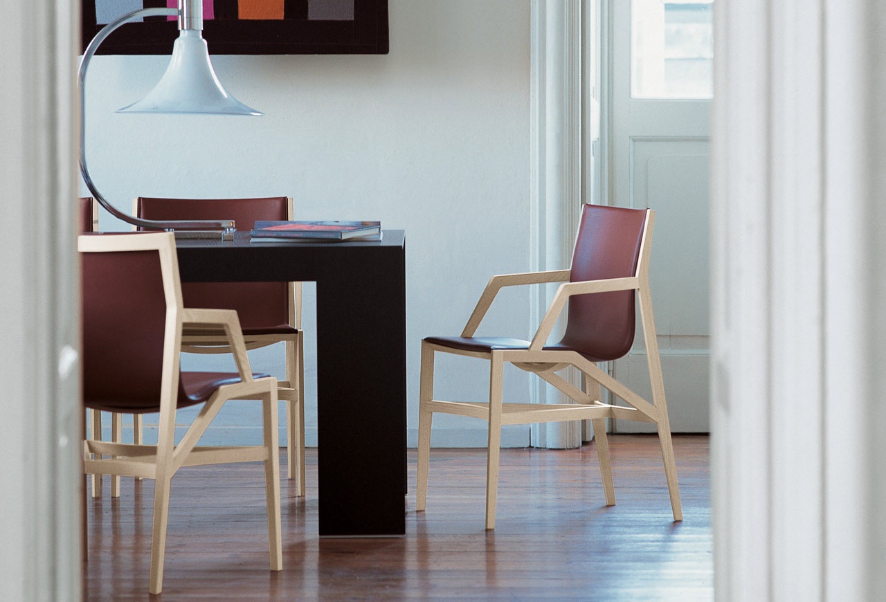 A chair made of wood 472 PILOTTA from the Italian manufacturer Cassina. The frame is made of hardwood, upholstered in leather from the company portfolio. The model with armrests. Colours in stock.